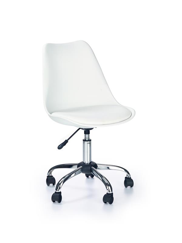 • Originální dětská otočná židle Coco v bílém provedení ozvláštní dětský nebo studentský pokoj teenagerů. Nadchne svým nápaditém designem, praktičností a velkou mírou pohodlí. Ergonomicky tvarovaný sedák a opěrka jsou vyrobeny z pevného plastu. Sedák židle je potažen ekokůží, přičemž tento materiál se vyznačuje vysokou odolností a snadnou udržovatelností. Stabilitu židle zajišťuje klasická kovová základna s pěti kolečky, která dává křeslu nosnost 80 kg. Samozřejmostí je regulace výšky sedáku pomocí plynového zvedáku. Židle je vhodná pro dospívající děti. Dětská židle Coco je nabízena také v barevném provedení šedé.