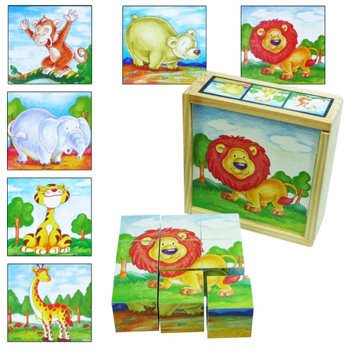 zrychlené vrácení a reklamaceDětské dřevěné kostky obsahují devět kostiček, ze kterých si děti postaví šest různých obrázků.