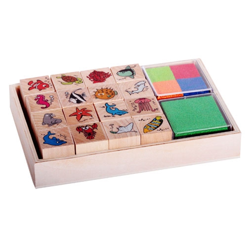 Dřevěná krabice razítek - Mořská zvířátka