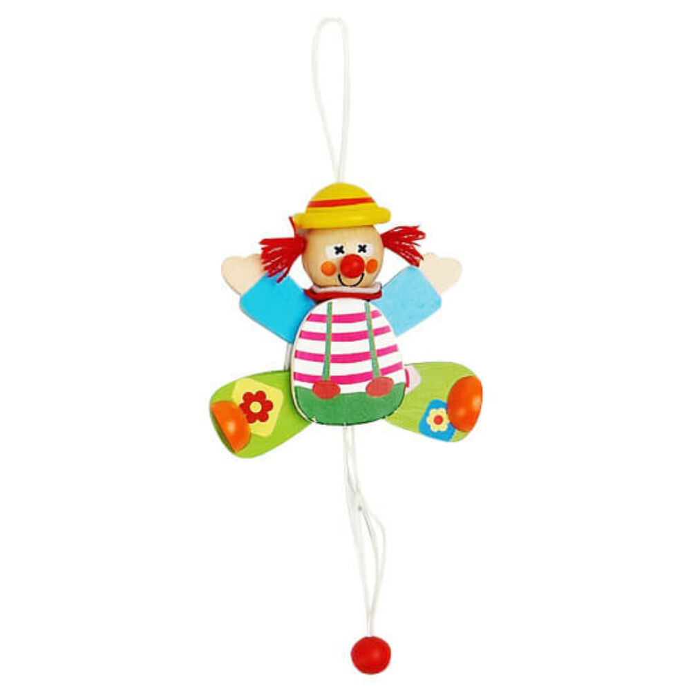 Dřevěná tahací hračka - Klaun s zelenou čepičkou