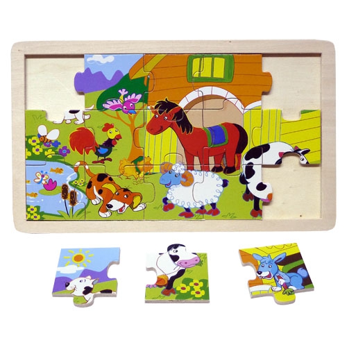 ProductName Drewmax 3263 - Dřevěné puzzle - Farma (15 dílků)