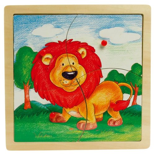 Dřevěné puzzle s úchyty - Lev jsou vhodnou dřevěnou hračkou pro nejmenší. Rozvíjí logické myšlení, prostorové vnímání a představivost. Díky použití veselých barev jsou puzzle oblíbené u dětí a zároveň se hodí i jako dekorace do dětského pokoje. Vhodné pro děti od 1 do 3 let.