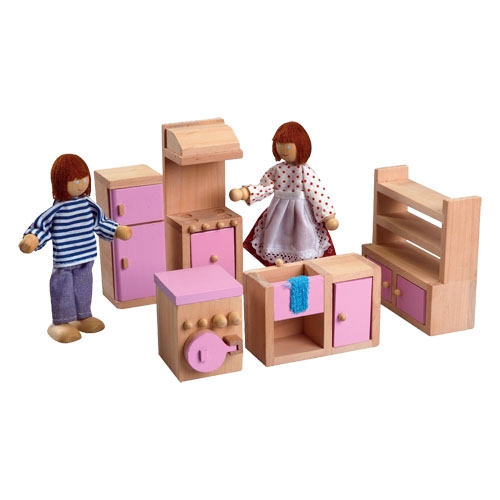 Nábytek je navržen pro panenky do maximální výšky 10 cm. Vyroben je z kvalitního dřeva, podporuje tvořivou hru, jemnou motoriku a představivost.