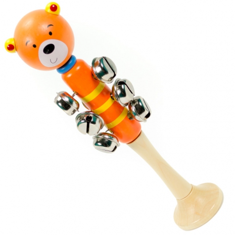 • Dětské dřevěné chrastítko s motivem medvídka, malované veselými barvami.