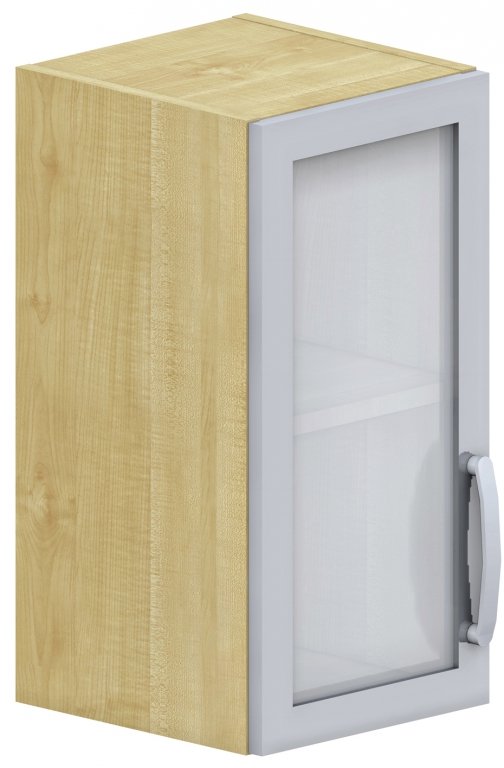 Levá. Závěsná. S prosklenými dveřmi, s policí a pohledovými zády. Skříně vyrobeny z laminotřískové desky o tloušťce 18 mm a olepeny hranou ABS 0,5 mm. U prosklených dveří sklo mléčné v hliníkovém rámečku. Bez příplatku je možné objednat prosklené dveře v dřevěném rámečku ve stejném provedení jako korpus skříně. Úchytky kovové. Expedováno ve smontovaném stavu.