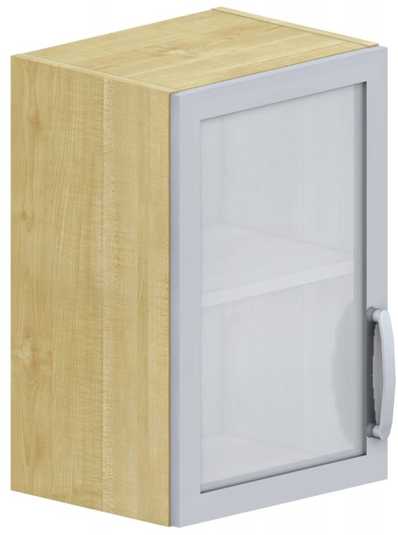 Levá. Závěsná. S prosklenými dveřmi, s policí a pohledovými zády. Skříně vyrobeny z laminotřískové desky o tloušťce 18 mm a olepeny hranou ABS 0,5 mm. U prosklených dveří sklo mléčné v hliníkovém rámečku. Bez příplatku je možné objednat prosklené dveře v dřevěném rámečku ve stejném provedení jako korpus skříně. Úchytky kovové. Expedováno ve smontovaném stavu.