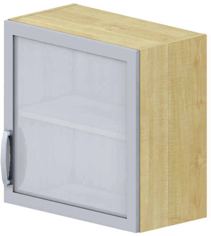 Pravá. Závěsná. S prosklenými dveřmi, s policí a pohledovými zády. Skříně vyrobeny z laminotřískové desky o tloušťce 18 mm a olepeny hranou ABS 0,5 mm. U prosklených dveří sklo mléčné v hliníkovém rámečku. Bez příplatku je možné objednat prosklené dveře v dřevěném rámečku ve stejném provedení jako korpus skříně. Úchytky kovové. Expedováno ve smontovaném stavu.