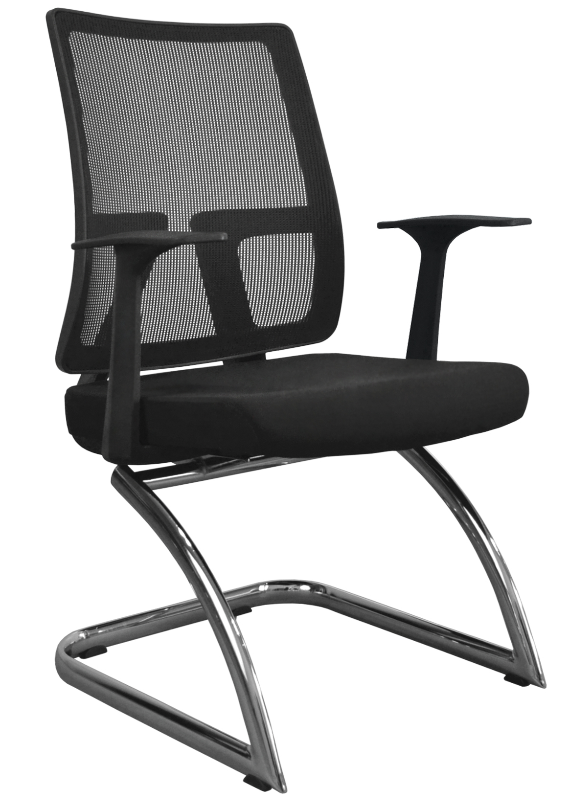 Moderně designovaná jednací židle včetně pevných područek, černá síť na opěráku, čaloun na sedáku s ocelovým chromovaným rámem ližinového typu je optimálním doplněním pro kanceláře a jednání. Nosnost 120 kg, záruka 24 měsíců.