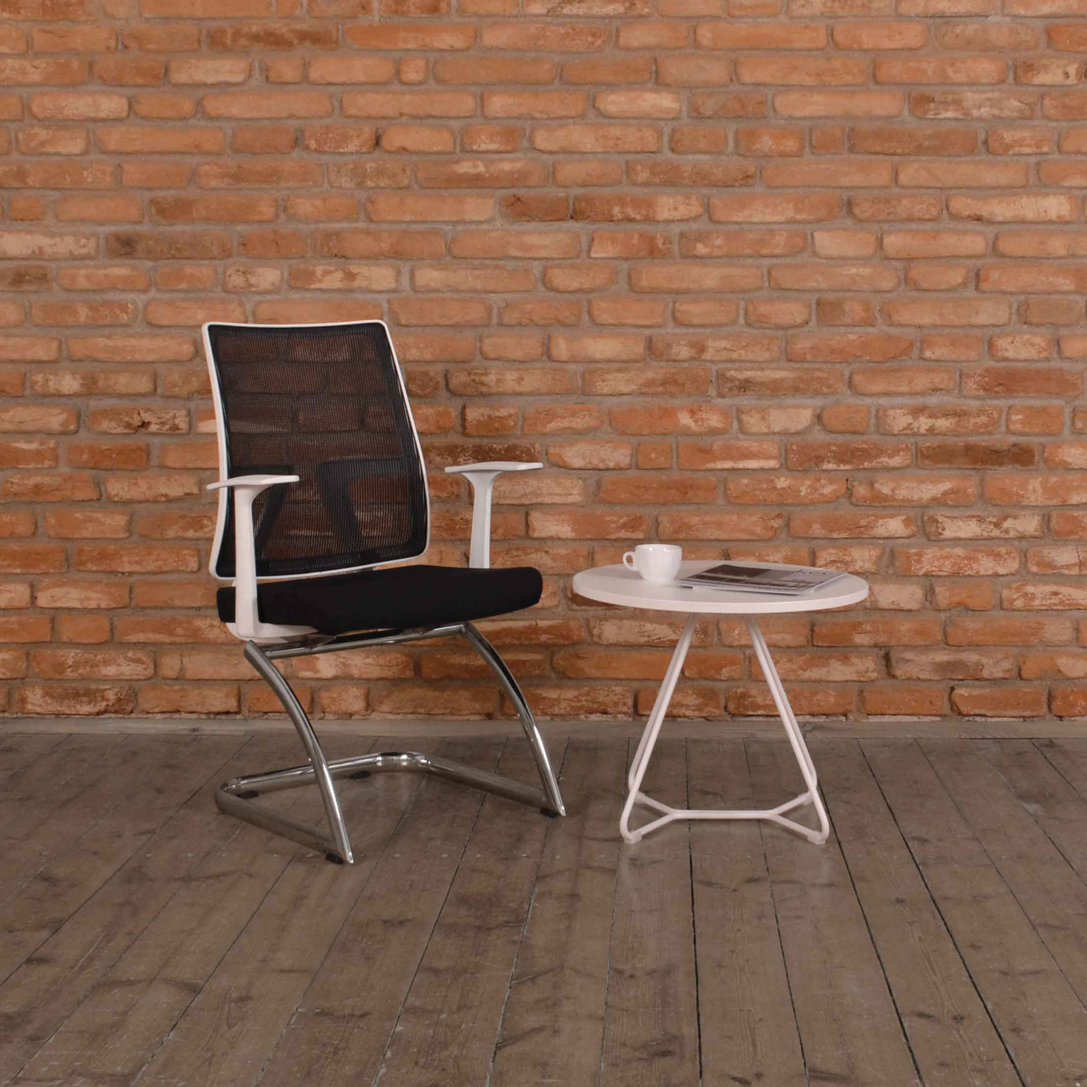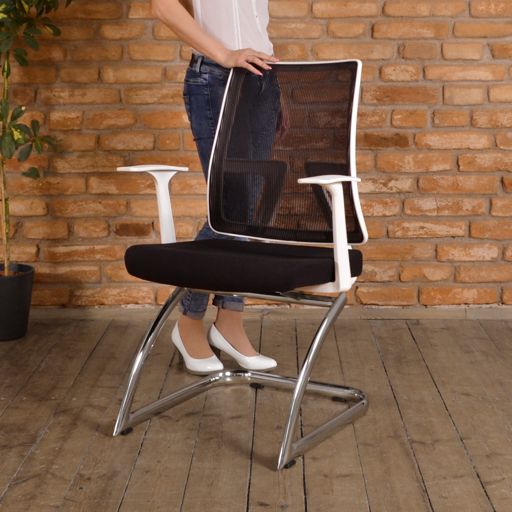 • Moderně designovaná jednací židle včetně pevných područek, černá síť na opěráku, čaloun na sedáku s ocelovým chromovaným rámem ližinového typu je optimálním doplněním pro kanceláře a jednání. Nosnost 120 kg, záruka 24 měsíců.