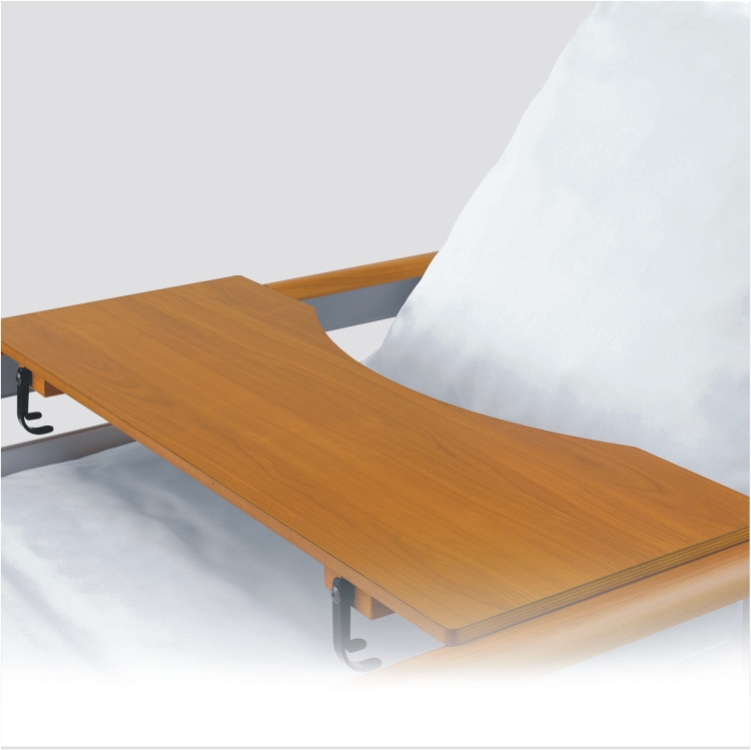 Jídelní deska k lůžku s praktickou lištou k fixaci knih.