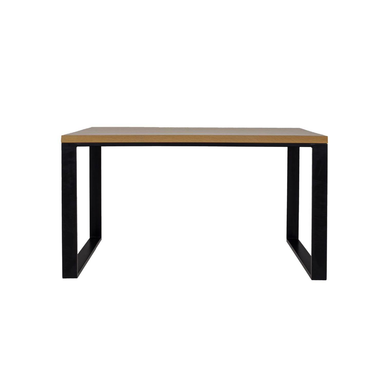 Jídelní stůl z masivního přírodního dubového dřeva v kombinaci s černým kovem.