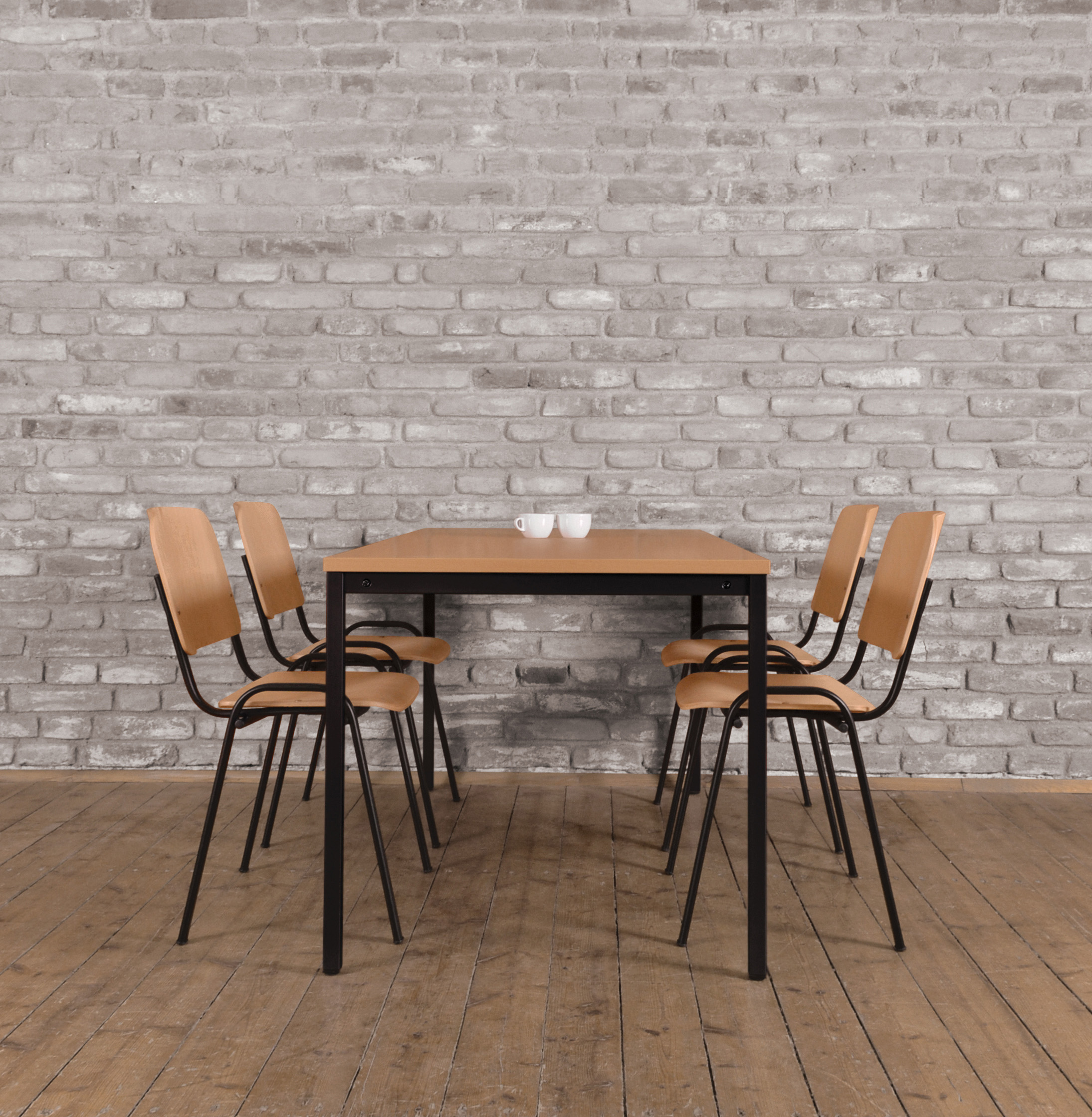 • Stolová deska z laminotřískové desky tloušťky 18 mm, hrana ABS 2 mm. Rámová kovová podnož, ocelový profil rámu a nohou 30 x 30 mm. Standartní barva podnože stříbrná RAL 9006. Bez příplatku možnost provedení bílá RAL 9003, nebo černá RAL 9005.
