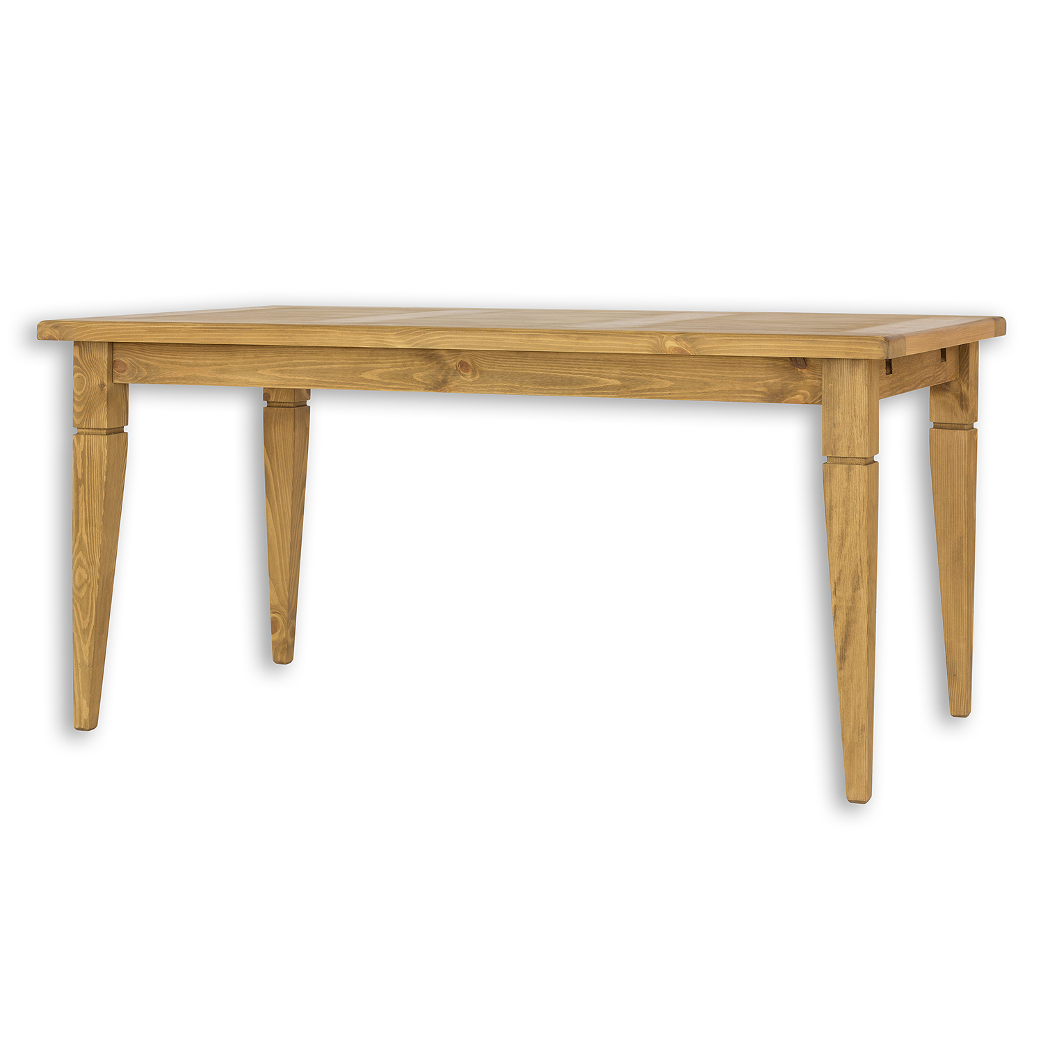 Stůl je navržen v rustikálním stylu, celý je vyroben z masivního borového dřeva.