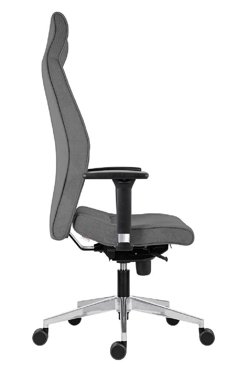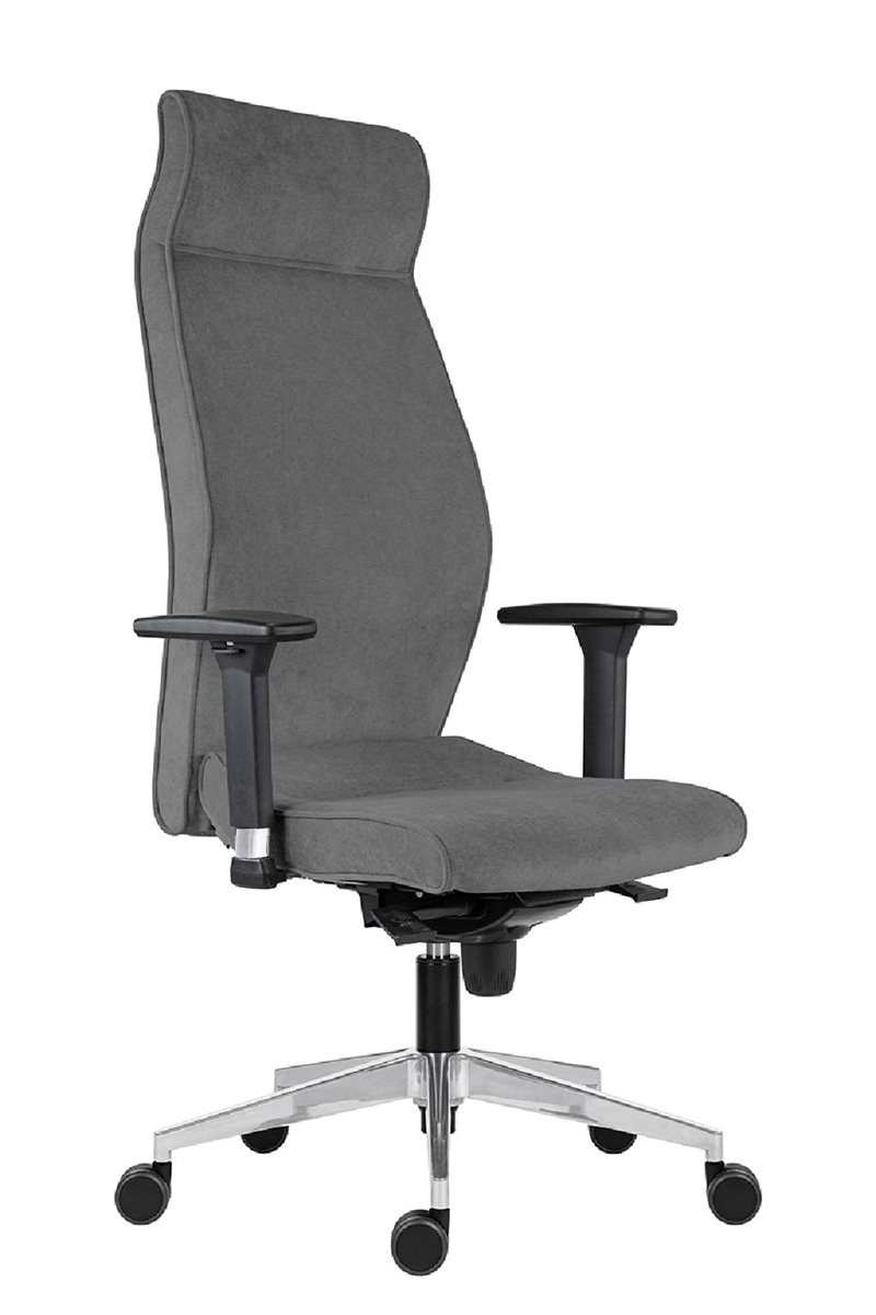 Pohodlné sezení zaručuje extra vysoký opěrák (80 cm), ergonomické tvarování sedáku a opěráku, čalounění ze studené pěny, synchronní mechanismus s nastavením síly protiváhy.