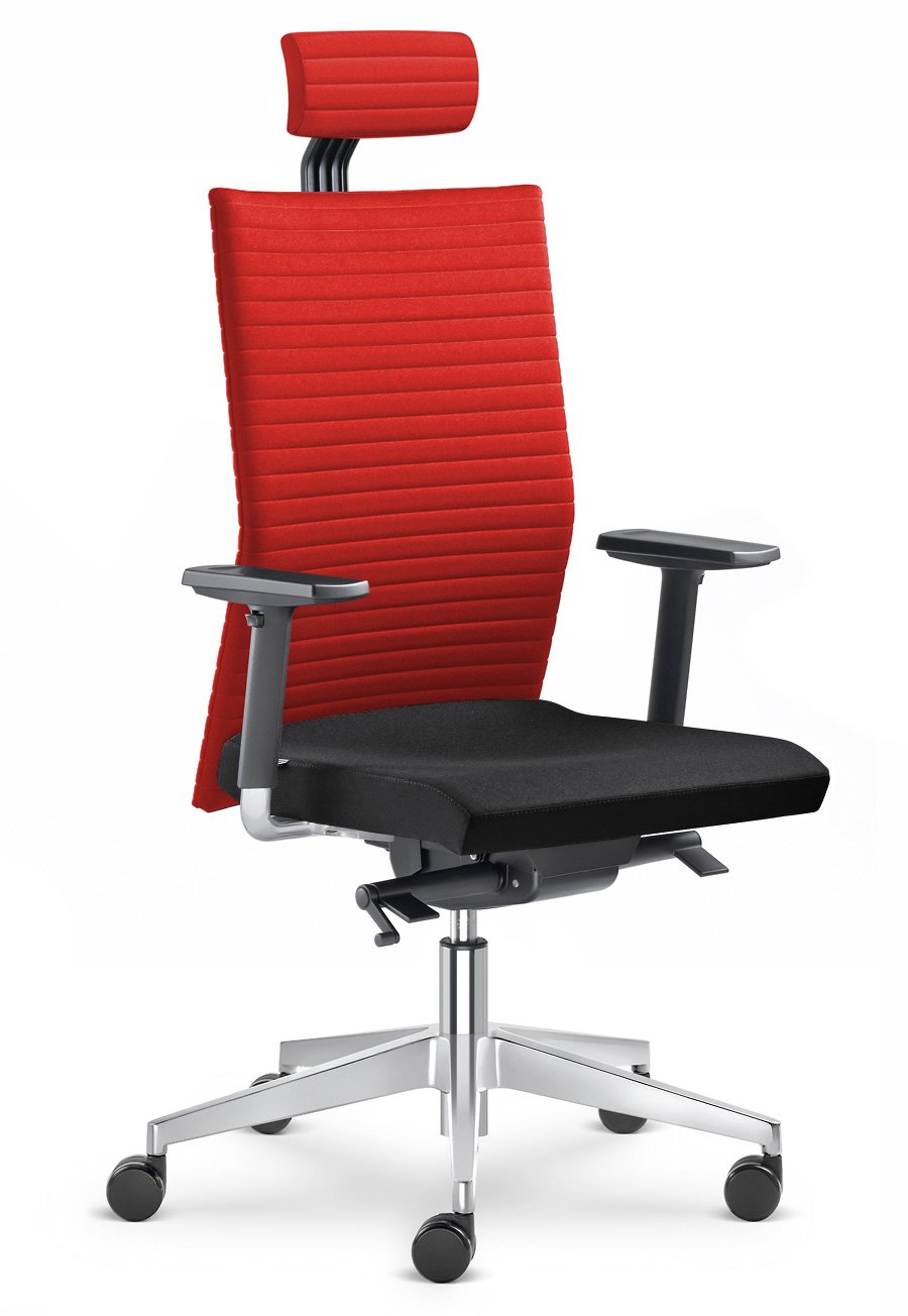 Židle ELEMENT 430-SYS-F40-N6 Výškově stavitelná a naklopitelná opěrka hlavy, vysoký opěrák. Synchronní mechanika SYS s bočním nastavením tuhosti opěradla. Plynový píst, leštěný hliníkový kříž, kolečka 60 mm. Výškově stavitelné područky BR207.