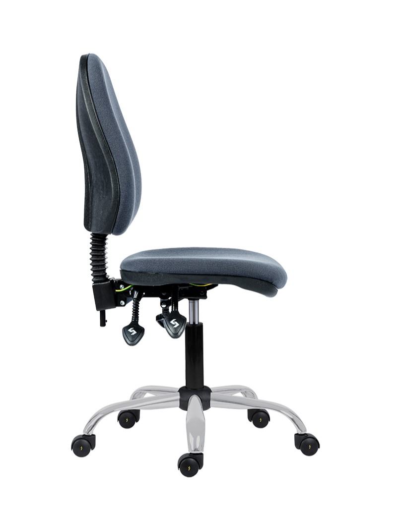 Asynchronní mechanismus - nezávislé nastavení úhlu sedáku a opěráku, nastavení výšky opěráku, plynový píst, ocelová chromovaná báze, kolečka pro měkké podlahy, nosnost 150 kg, záruka 24 měsíců, český výrobek.