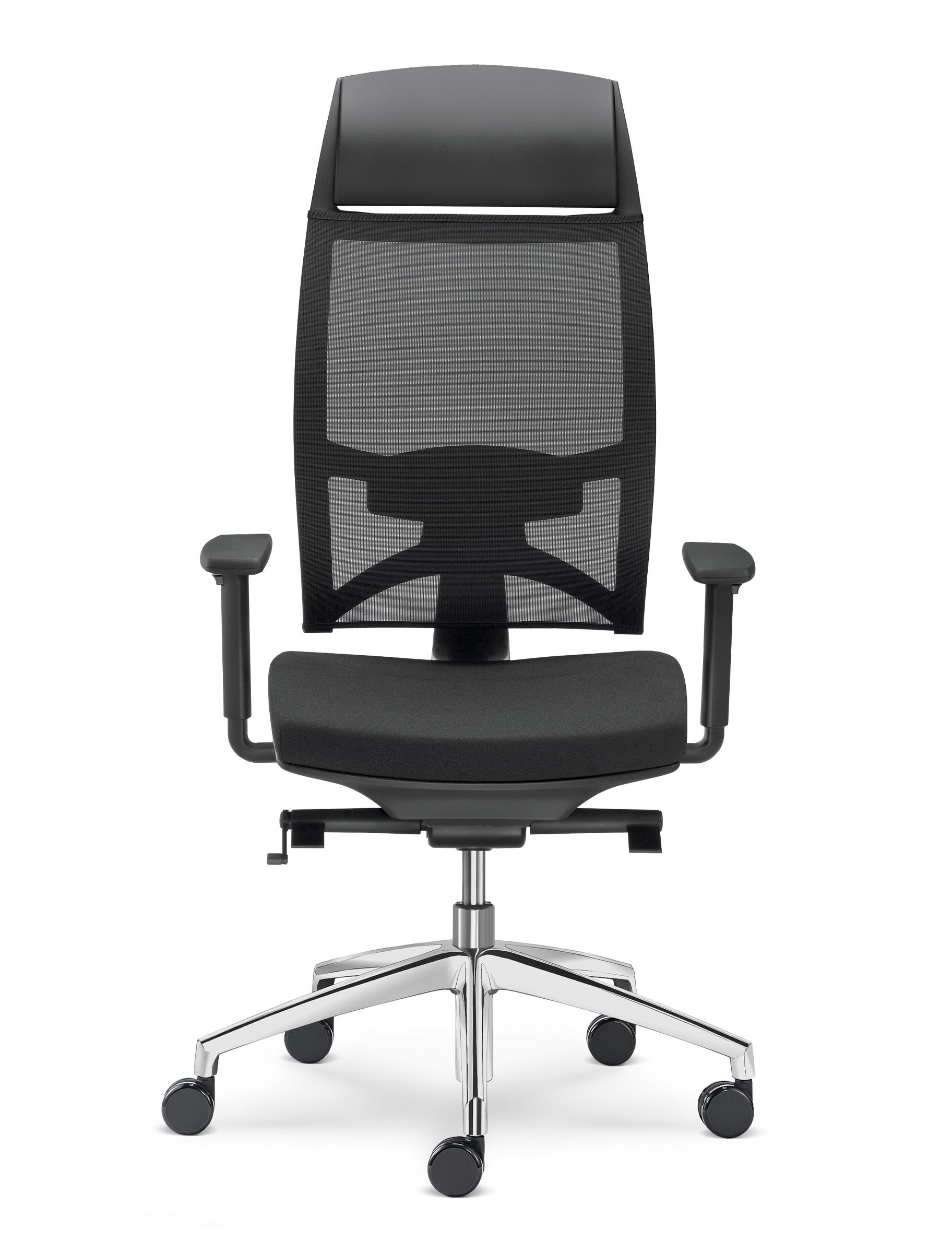 Židle disponuje vysokým opěrákem. Stavitelná opěrka hlavy je čalouněná. Synchronní mechanika SYS s bočním nastavením tuhosti. Posuvný sedák. Hliníkový držák zad. Plynový píst, leštěný hliníkový kříž. Výškově stavitelné područky.
