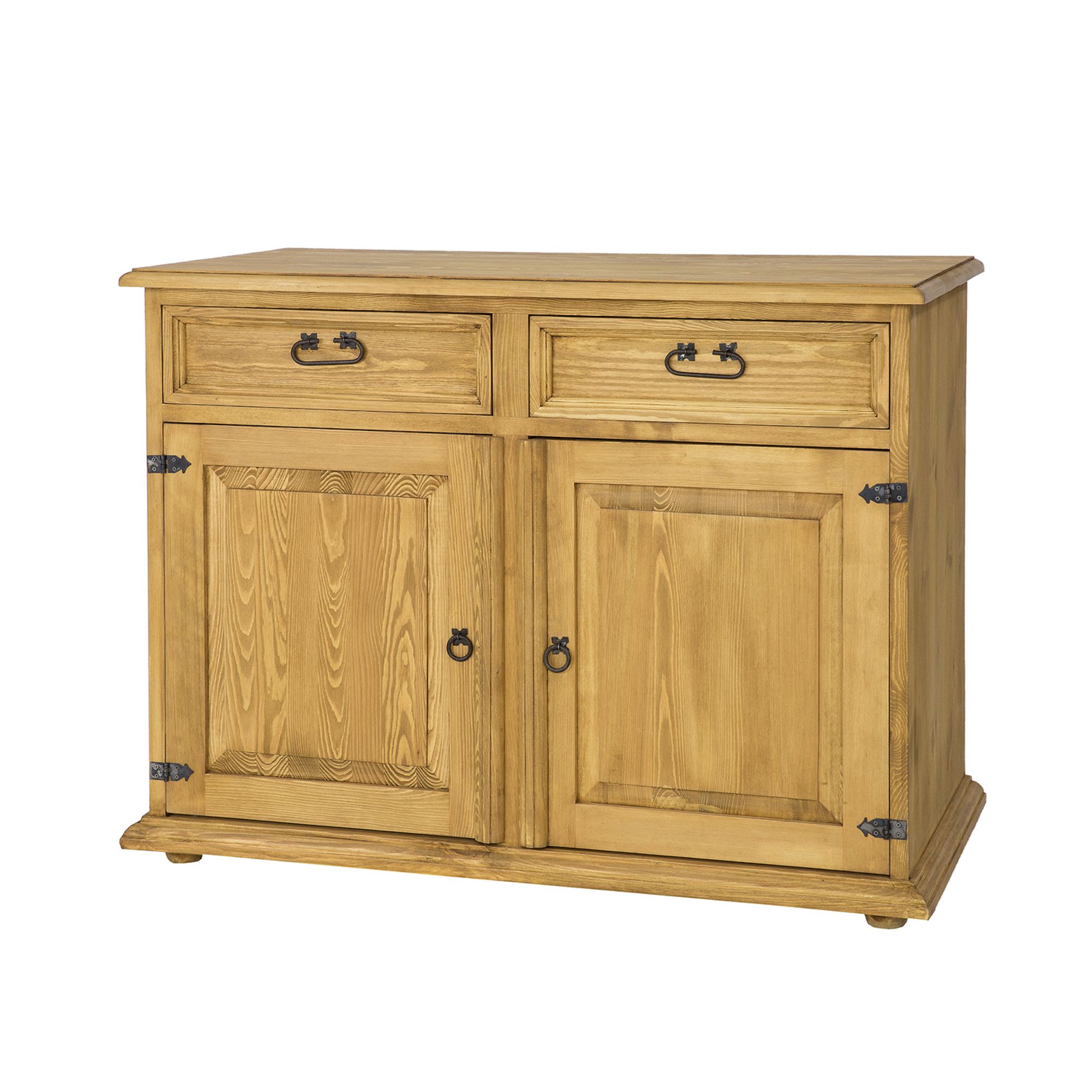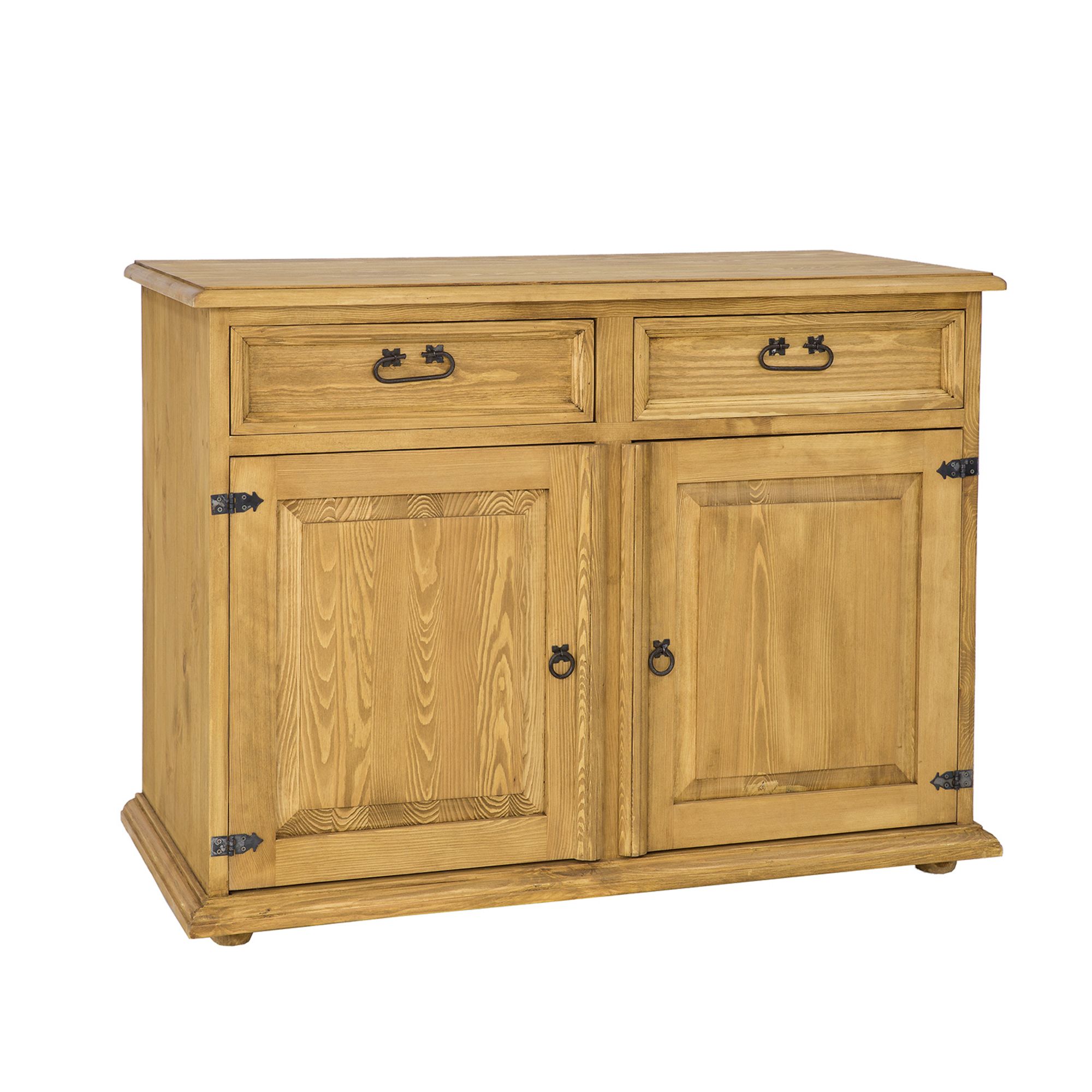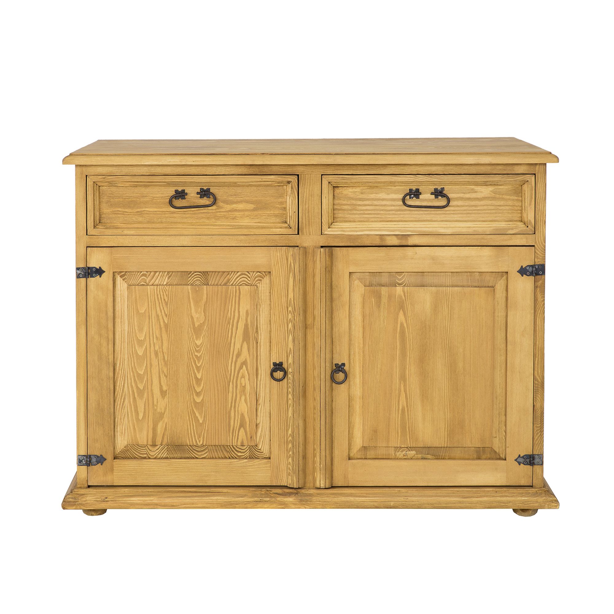 Komoda je navržena v rustikálním stylu a celá vyrobena z masivního borovicového dřeva. Má dvě praktické zásuvky, posuvné na dřevěných výsuvech a uvnitř skříňku s dvířky a policí. K výrobě byly použity ručně vyrobené kovové úchyty a panty se starožitným efektem. Komoda má odolnou a pevnou konstrukci. Ideální do ložnic a šaten. Dodá každému interiéru jedinečnou atmosféru. Povrch nábytku je ošetřen přírodním včelím voskem, který vytváří ochrannou vrstvu proti vlhkosti a zároveň pečuje o dřevo. Nábytek je dodáván smontovaný. Rozměry: šířka 112 cm x výška 85 cm x hloubka 56 cm. Termín dodání 6-12 týdnů.