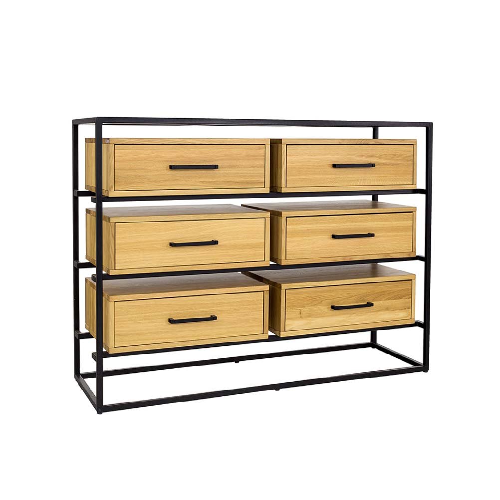Dřevěná kombinovaná komoda se 6 zásuvkami je vyrobena z masivního přírodního dubu a v kombinaci s černým kovem. K výrobě je použitý prvotřídní materiál a pro povrchovou úpravu je ekologický lak. Tyto komody se vyznačují pečlivým zpracováním a dlouhou životností. V základní ceně je komoda z dubového dřeva v přírodní barvě. Moření dle vzorníku je za příplatek 10% z ceny. Masivní nábytek nemusí být vždy jen v klasickém stylu. Tento nábytek je moderní a luxusně propracovaný. Užíte si jeho luxusní vůni a propracované detaily.
