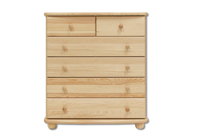 Komoda je vyrobena z masivní přírodní borovice a je povrchově upravená lakováním. Zásuvky jsou dřevěné na kolečkových výsuvech s 2/3 otevřením.