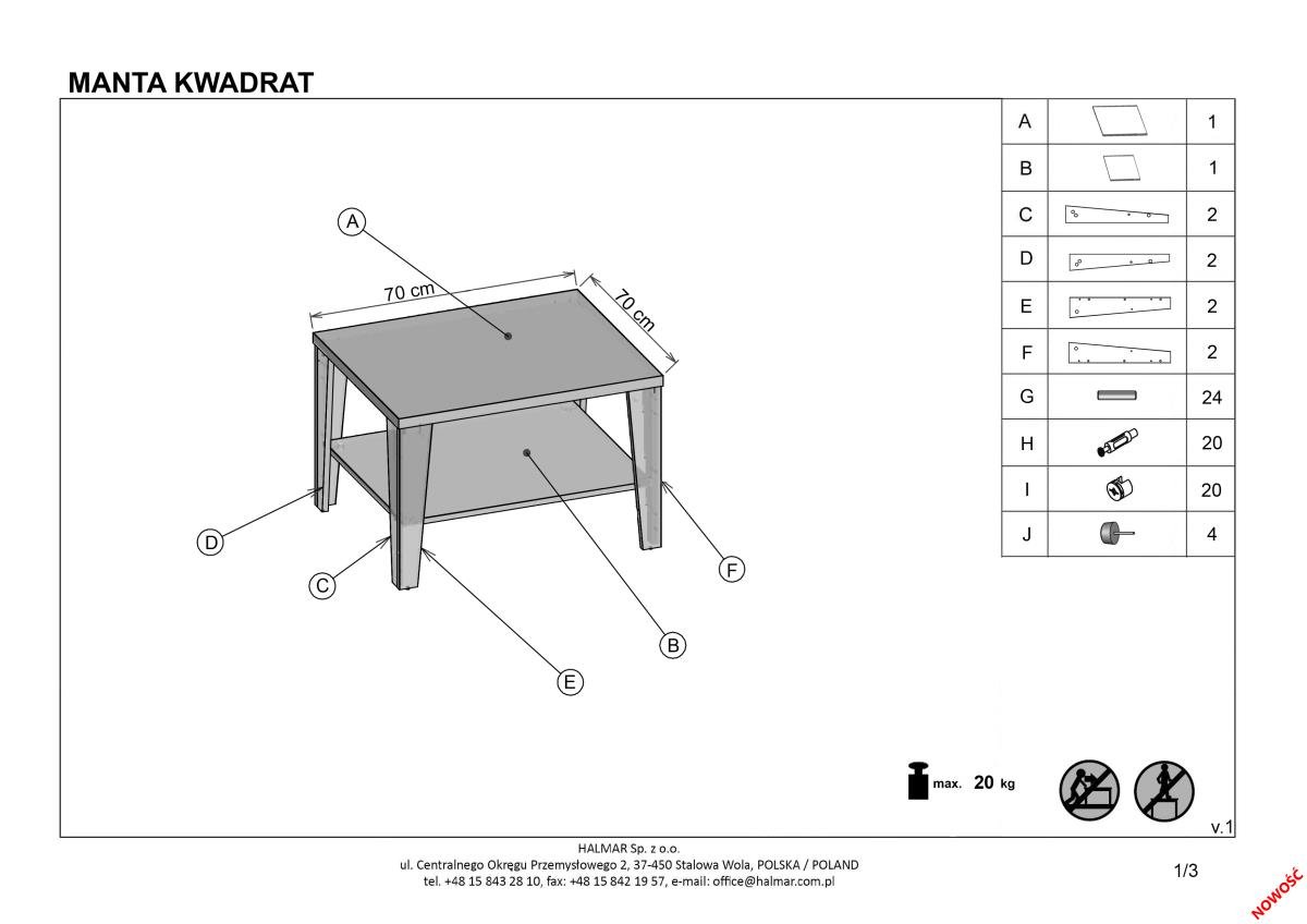 Čtvercový konferenční stolek Manta kwadrat je vyrobený z laminovaných MDF desek v dekoru bílá. Obsahuje i odkládací polici, která má nosnost 20kg. Konferenční stolky dotváří atmosféru interiéru a jsou nedílnou sočástí každého obývacího pokoje. Konferenční stolek Manta kwadrat dodá svým klasickým designem Vašemu bydlení moderní styl. Dekorace nejsou součástí balení. Dodáváme v demontu.