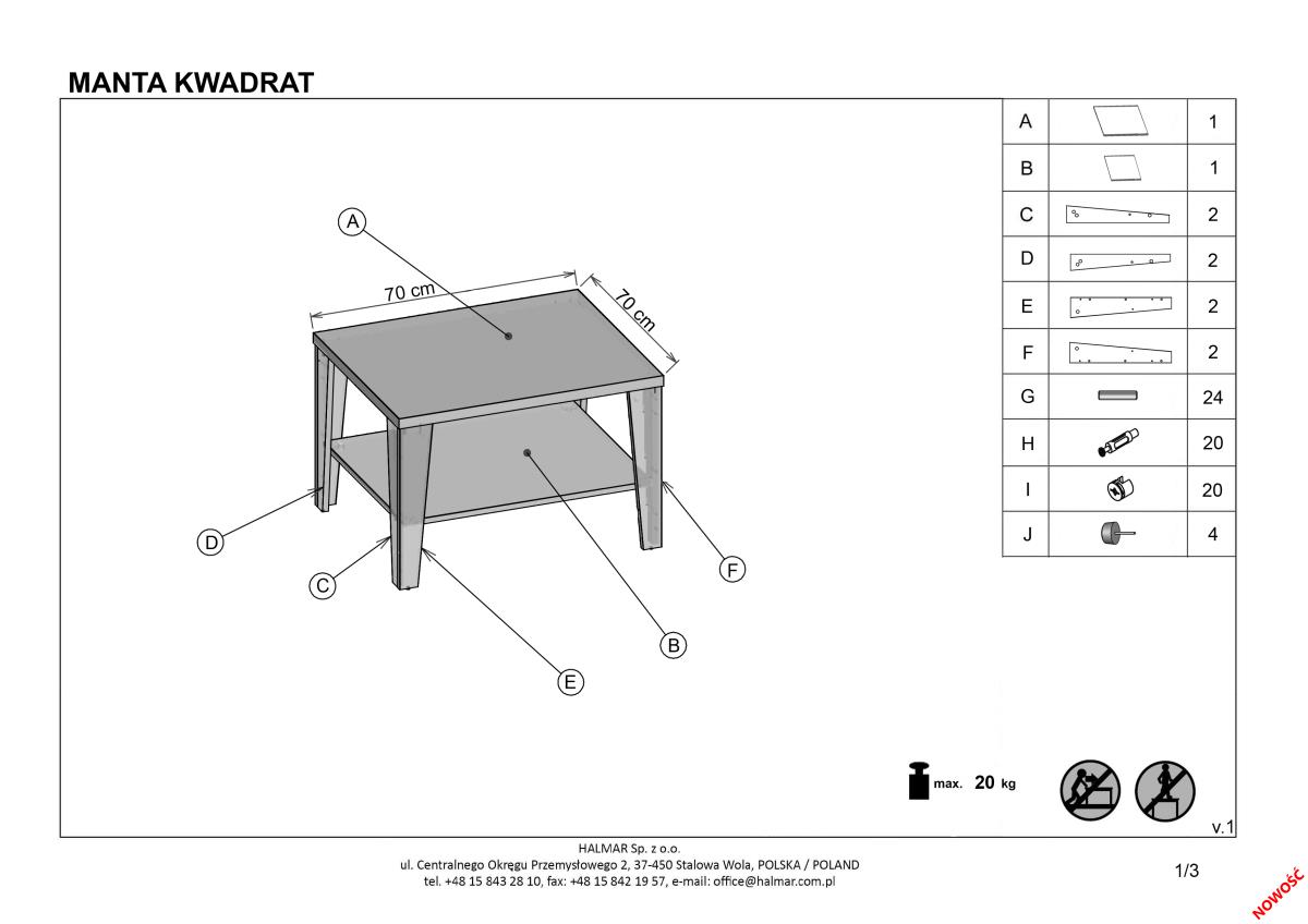 • Čtvercový konferenční stolek Manta kwadrat je vyrobený z laminovaných MDF desek v dekoru bílá. Obsahuje i odkládací polici, která má nosnost 20kg. Konferenční stolky dotváří atmosféru interiéru a jsou nedílnou sočástí každého obývacího pokoje. Konferenční stolek Manta kwadrat dodá svým klasickým designem Vašemu bydlení moderní styl. Dekorace nejsou součástí balení. Dodáváme v demontu.