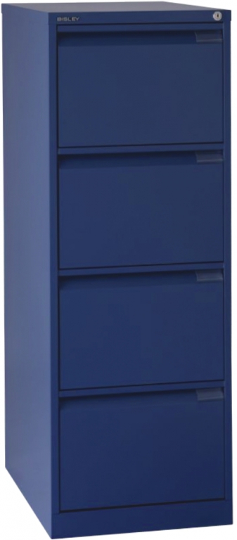 Čtyřzásuvková kovová kartotéka pro dokumenty nebo závěsné pořadače formátu A4 nebo Foolscap, šířka 470, výška 1321, hloubka 622 mm, centrální zámek, různé barvy. Primárně kartotéka slouží pro ukládání širších formátů Foolscap, ale každá zásuvka je vybavena redukční lištou pro případ ukládání závěsných kapes formátu A4 nebo Folio.