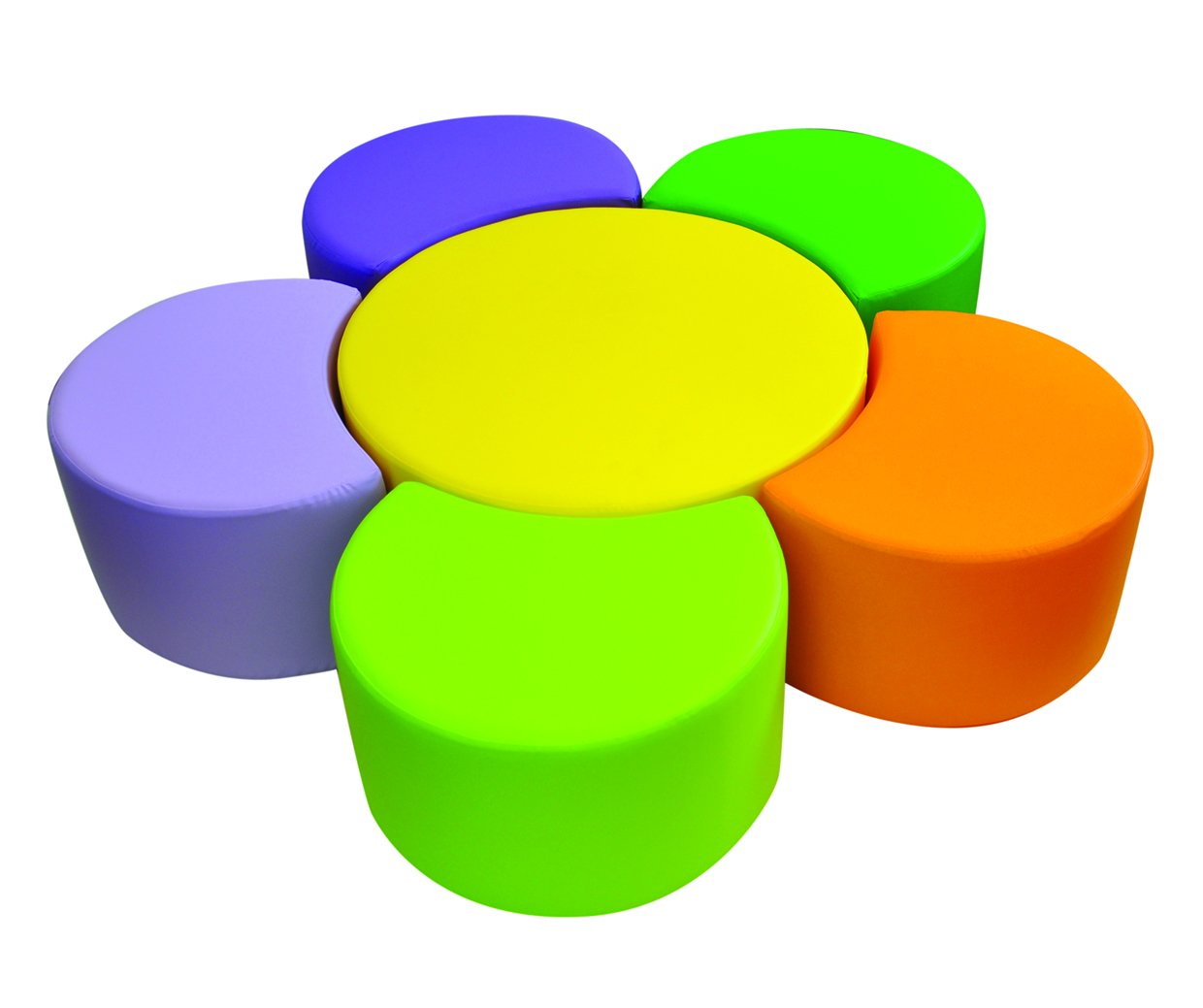 Měkké sezení v sadě taburetů tvořících květinu je ideálním doplňkem mateřských školek, dětských koutků, nebo čtecích a relaxačních zón.