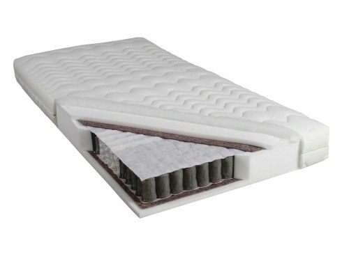 Jádro matrace je vyrobeno ze 7-zónových taštičkových pružin s různou pružností, která je přizpůsobena fyziologické stavbě těla. Pružiny jsou vyrobené z velmi kvalitního drátu, jsou lepené bodově, ve středu jejich výšky. V matraci Samos o velikosti 140x200 se nachází 1344 pružin. Taštičková pružina je oboustranně obložená čalounickou síťkou a polyuretanovou pěnou T25 - 25 mm se zvýšenou elasticitou, výška: 19cm.