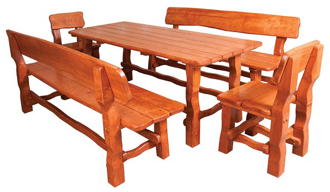 Dopřejte si luxusní zahradní posezení z masivního dřeva. Zahradní set je vyrobený z olšového dřeva. Zpracování je velice kvalitní. Zahradní set se skládá ze zahradního stolu, dvou zahradních lavic a dvou zahradních židlí. Pohodlně se za něj usadí minimálně šest osob. Povrch je ošetřen ekologickým, zdravotně nezávadným lakem, který chrání nábytek před nepříznivými vlivy jako je slunce, déšť a vítr.