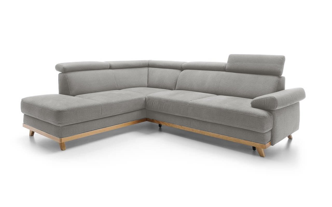 zrychlené vrácení a reklamaceElegantní rohová sedací souprava s komfortně měkkým sezením a polohovatelnými opěrkami hlavy nabízí skvělé pohodlí i praktičnost. Dřevěné nožičky dodáváme v různých odstínech. Vlastní výběr jejich moření uveďte do poznámky na konci objednávky.