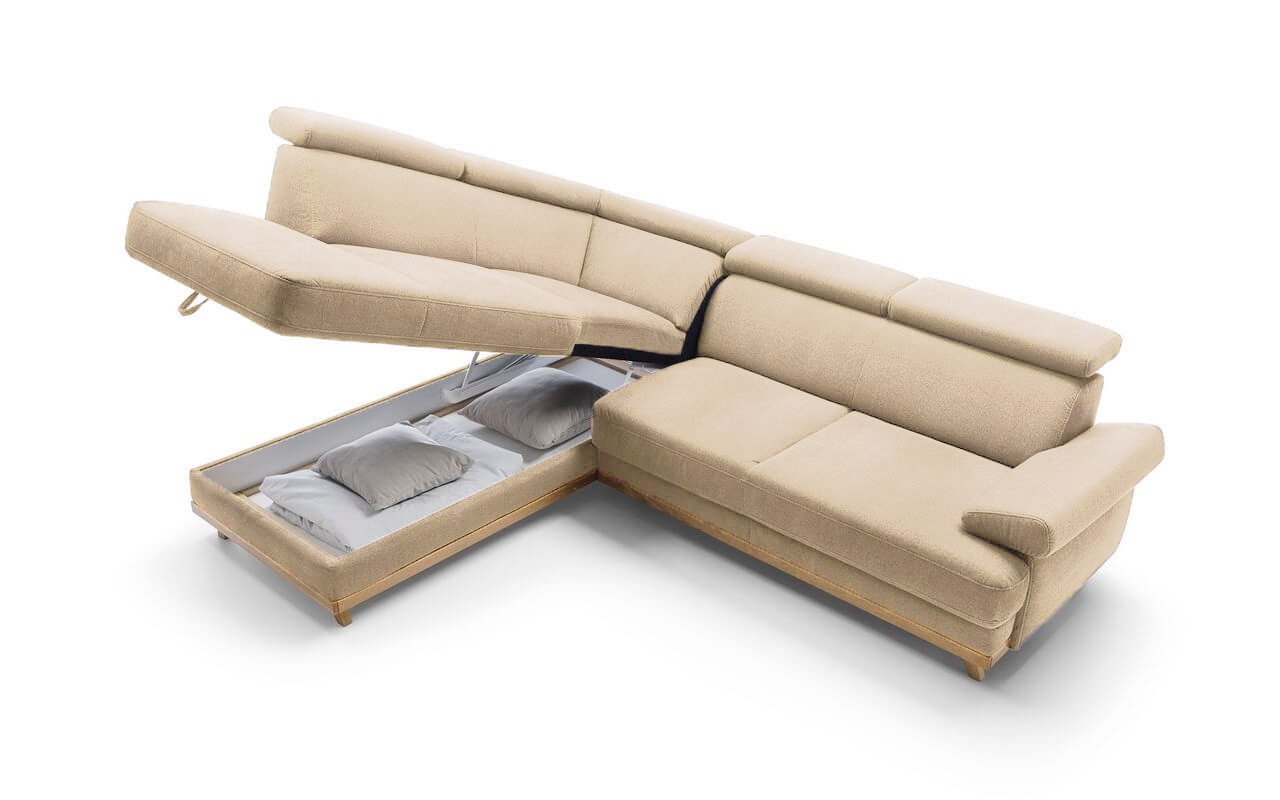 Bezesporu oceníte rozkládací systém, který se nachází přímo pod sedákem - snadným pohybem jej rozložíte a využijete jako prostorné lůžko. Stojíte-li právě naproti pohovce, potom se po vaší pravé ruce nachází relaxační zóna, která v sobě navíc ukrývá úložný prostor o velikosti 188 cm x 79 cm x 15 cm).