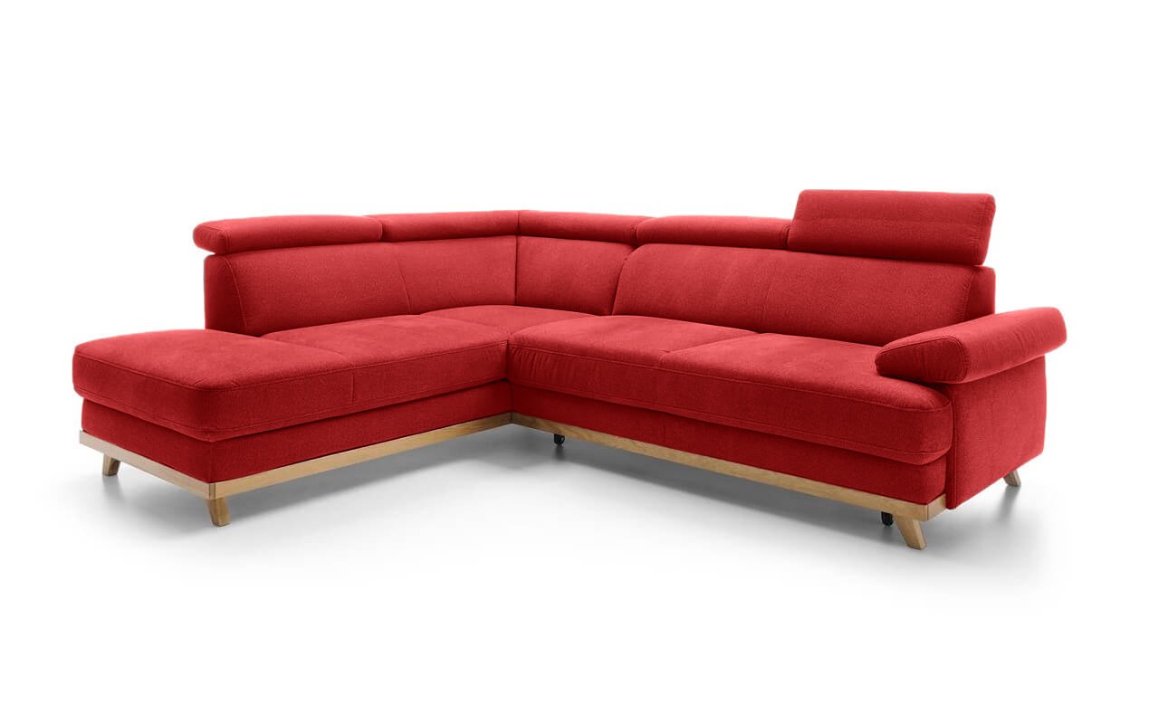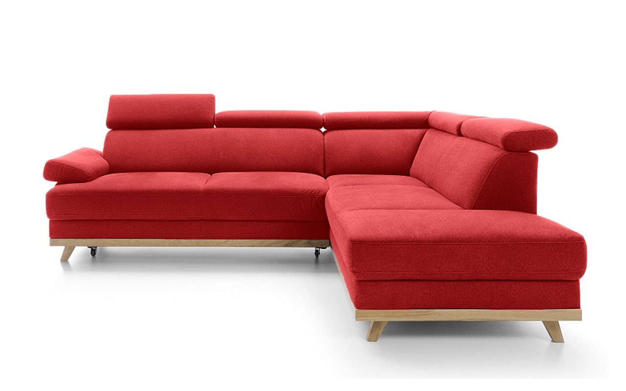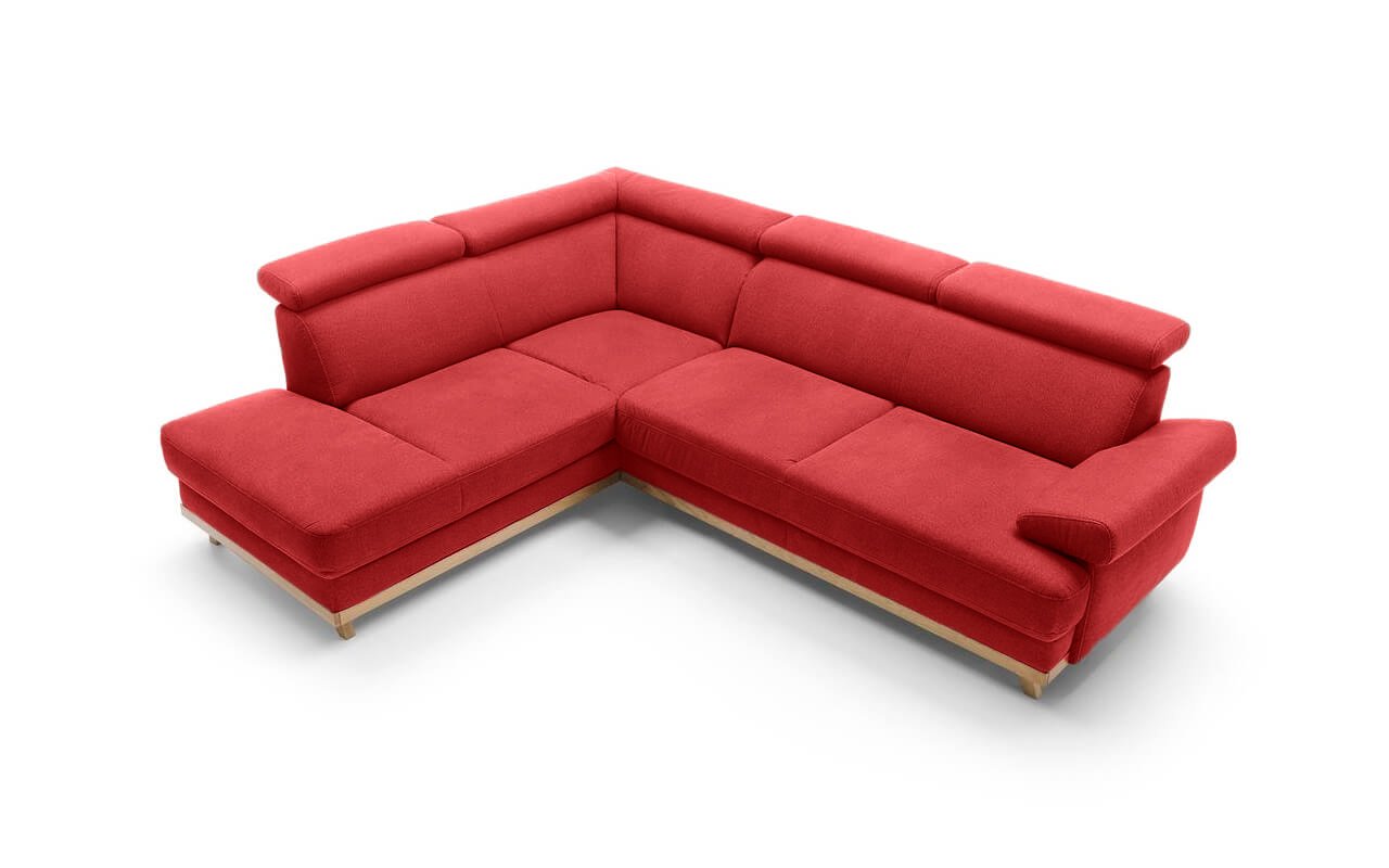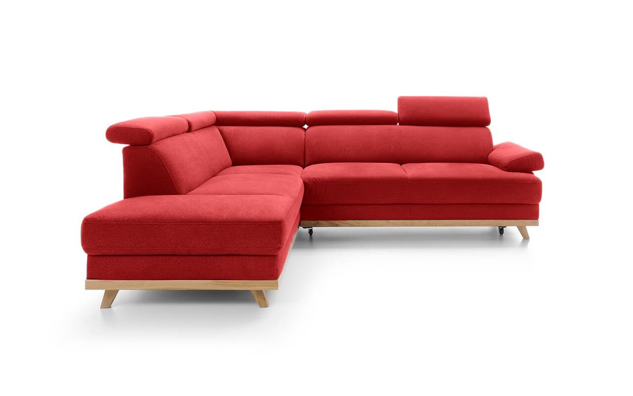 Elegantní rohová sedací souprava s komfortně měkkým sezením a polohovatelnými opěrkami hlavy nabízí skvělé pohodlí i praktičnost. Dřevěné nožičky dodáváme v různých odstínech. Vlastní výběr jejich moření uveďte do poznámky na konci objednávky.