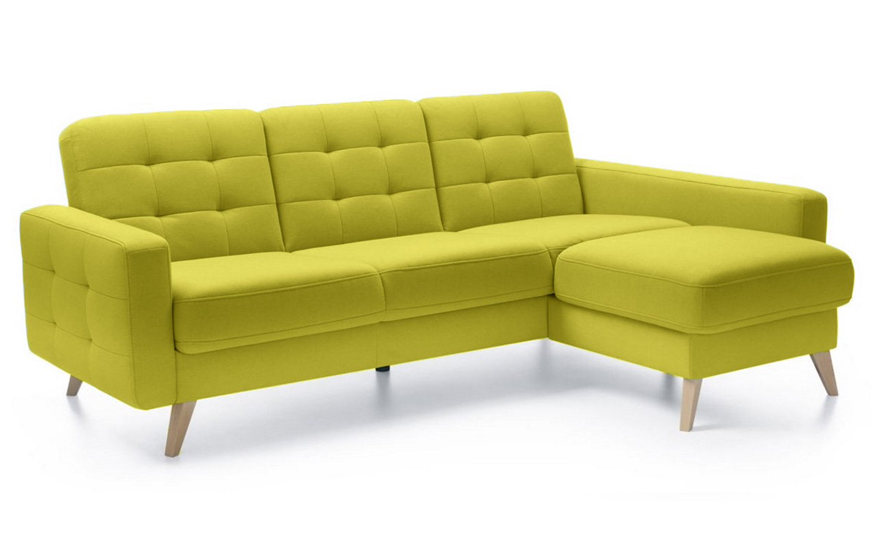 Trojmístná čalouněná rohová sedací souprava v oblíbeném skandinávském stylu vytvoří příjemné pohodlí v každém obývacím pokoji. Elegantní zaoblené područky, pohodlené opěrky zad s dekorativním proševem a masivní dřevěné nohy (jejichž moření si můžete zvolit z naší pestré nabídky a uvést na konci objednávky do poznámky) vytvářejí společně zajímavý celek. Přímo pod sedákem se navíc nachází praktická rozkládací funkce s plochou o rozměru 115 cm x 190 cm. Oceníte jistě také využití úložného prostoru k ukrytí drobných sezonních věcí nebo lůžkovin. Stojíte-li právě naproti pohovce, potom se po vaší levé ruce nachází pohodlná relaxační zóna s velkorysou područkou, určená pro kvalitní odpočinek.