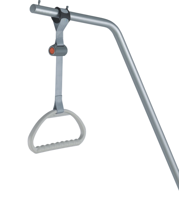 Plastová. Mechanismus navíjení umožňuje nastavit výšku rukojeti v rozsahu 280 mm.
