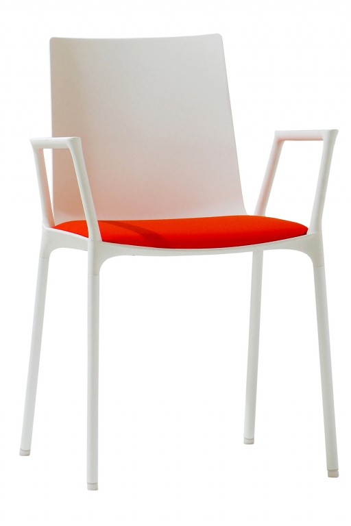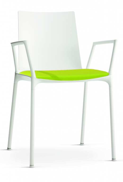 Návrh židle sjednocuje zdánlivě protichůdné vlastnosti – na jedné straně jemný a citlivý zjev, na druhé straně odolná robustní konstrukce. Lícní stranu umělohmotné skořepiny charakterizuje jasná, plynulá kontura – nepřerušovaná a klidná. Nohy vypadají, jako by vyrůstaly přímo ze spodní strany skořepiny. Tloušťka umělohmotné skořepiny se od okraje směrem ke středu sedací polohy zvětšuje. Vzniká tak stabilizující kříž, který zaručuje nezbytnou nosnost. Nohy z lakovaných trubek jsou se sedací skořepinou sešroubovány jednotlivě. Podnož je z precizních ocelových trubek, navíc s hluk tlumícími univerzálními kluzáky z umělé hmoty pro tvrdé i měkké povrchy. Židle má čalouněný sedák a područky, které jsou již zahrnuty v ceně.