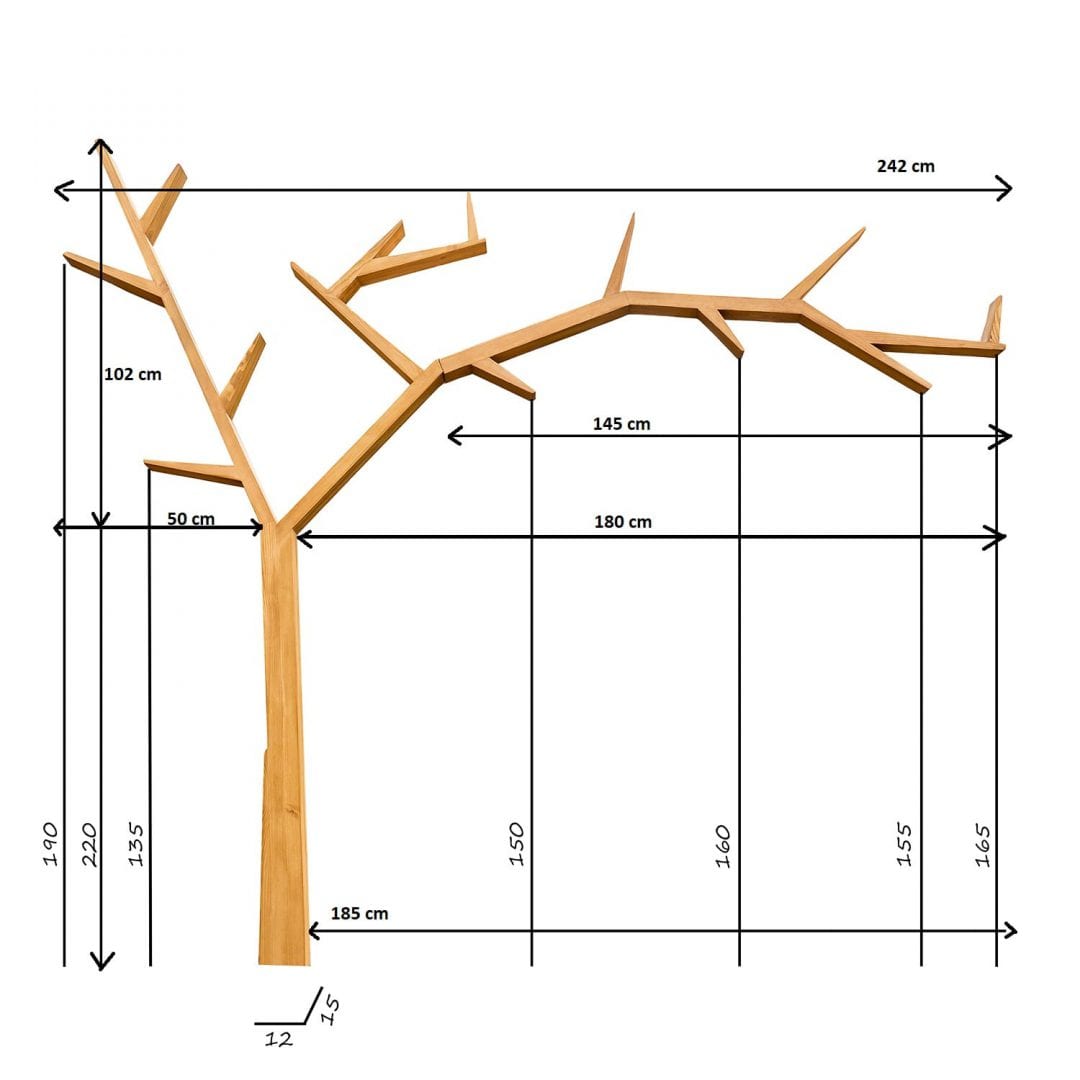 • Velká police je vyrobená z masivního borovicového dřeva, v rustikálním stylu, ve tvaru stromu. Je ideální pro vystavení knih, dekorací nebo suvenýrů. Každému interiéru dodá jedinečnou atmosféru, plnou tepla a rodinné atmosféry. Viditelná kresba zdůrazňuje krásu přírodního dřeva. Police se skládá ze dvou prvků, namontovaných přímo na stěnu. K polici jsou připevněny montážní šrouby přizpůsobené na cihlové zdi. V případě sádrokartonu je nutné použít jiné spojovací prvky, které nejsou součástí sady. Police plně přiléhá ke stěně, proto pokud je na stěně soklová lišta, musí být seříznuta na šířku základny police. Povrch nábytku je pokryt přírodním včelím voskem, který vytváří ochrannou vrstvu proti vlhkosti a zároveň pečuje o dřevo. Díky vosku je zvýrazněna přirozená struktura dřeva. Dodáváme v prvcích, rozměry 242x220x15cm. Termín dodání 6-12 týdnů.
