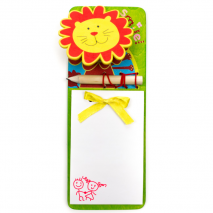 Poznámkový blok s tužkou a veselým motivem lva