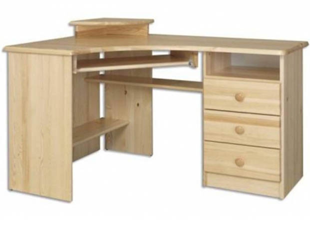 Stůl obsahuje výsuvnou desku na klávesnici, tři praktické zásuvky, volnou polici a podstavec pro monitor. Zásuvka dřevěná na kolečkových výsunech s 2/3 otevřením.
