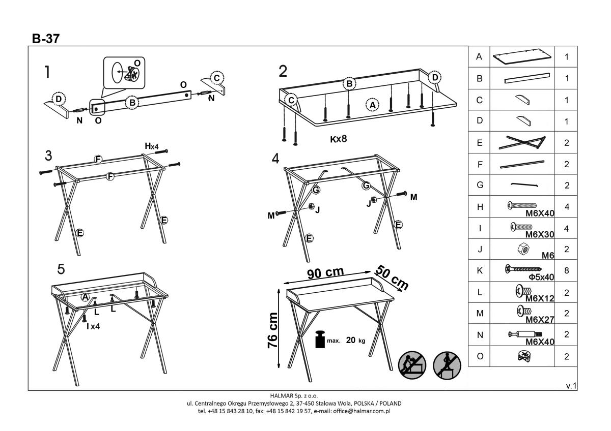 zrychlené vrácení a reklamaceMenší psací či pracovní stůl B-37 je vyroben z laminované MDF desky v kombinaci s černým kovem.