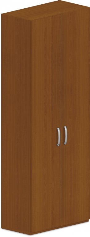 Skříň policová, dvířka, 5 polic Policové skříně z laminotřískové desky s pevnými oboustranně pohledovými zády o tloušťce 18 mm. Sokl o výšce 25 mm olepen hranou ABS 2 mm, ostatní hrany olepeny ABS 0,5 mm. Skříně mají vždy ve výšce 750 a 1100 mm pevnou polici pro zajištění maximální tuhosti konstrukce. Ostatní police volné, přestavitelné. Úchytky kovové. Skříně vybaveny stavitelnými kluzáky pro možnost vyrovnání podlahové nerovnosti. Expedováno ve smontovaném stavu.