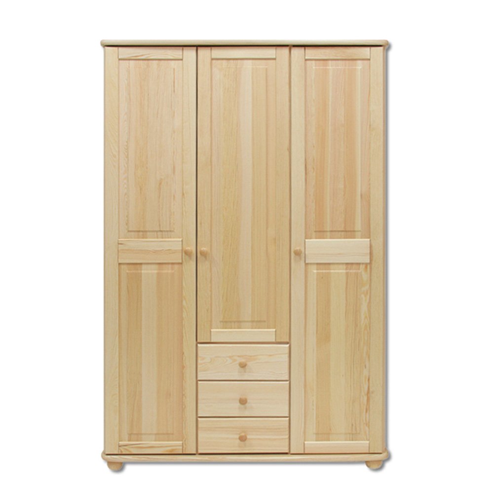 Třídvéřová dřevěná skříň se zásuvkami z masivní přírodní borovice