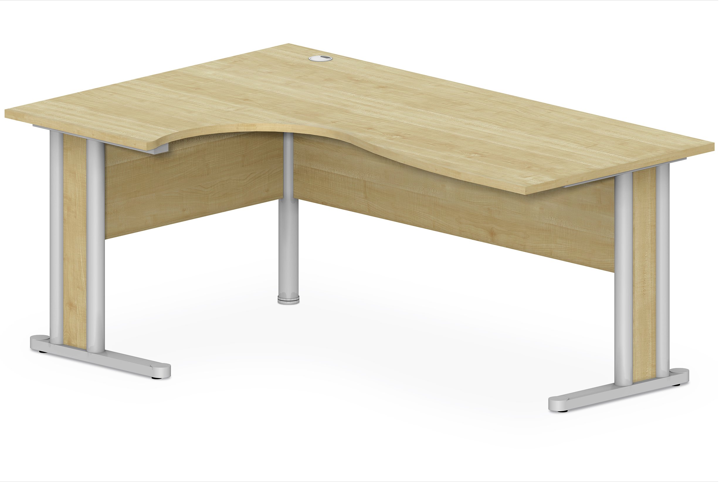 Kovová podnož s deskovou výplní bočnic i zádovou clonou 400 mm. Stolová deska tloušťky 25 mm, hrana ABS 2 mm. Součástí stolů jsou průchodky na kabely.