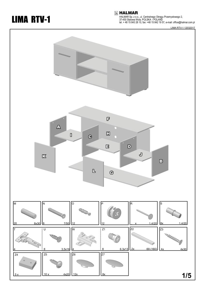 | ProductName | HALMAR LIMA RTV1 Televizní stolek 137x40x44cm - bílý/dub sonoma |