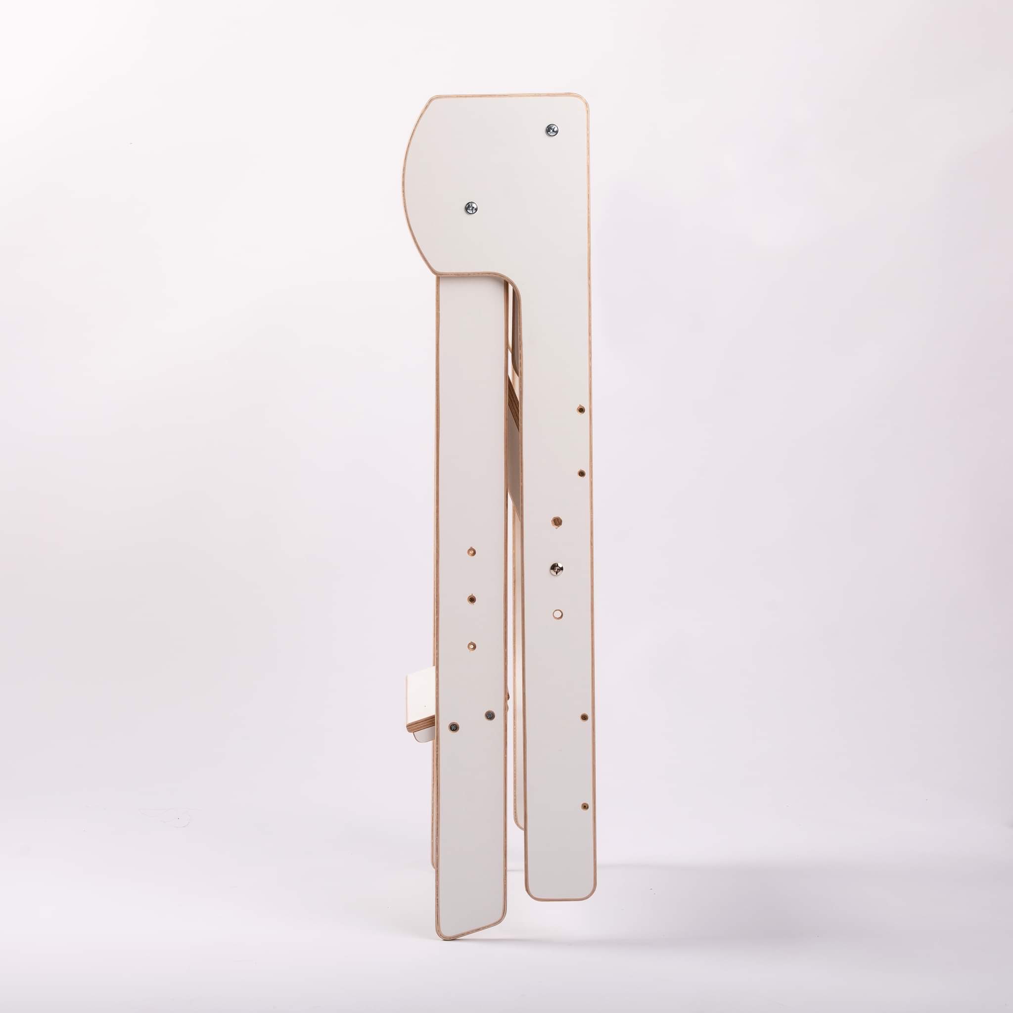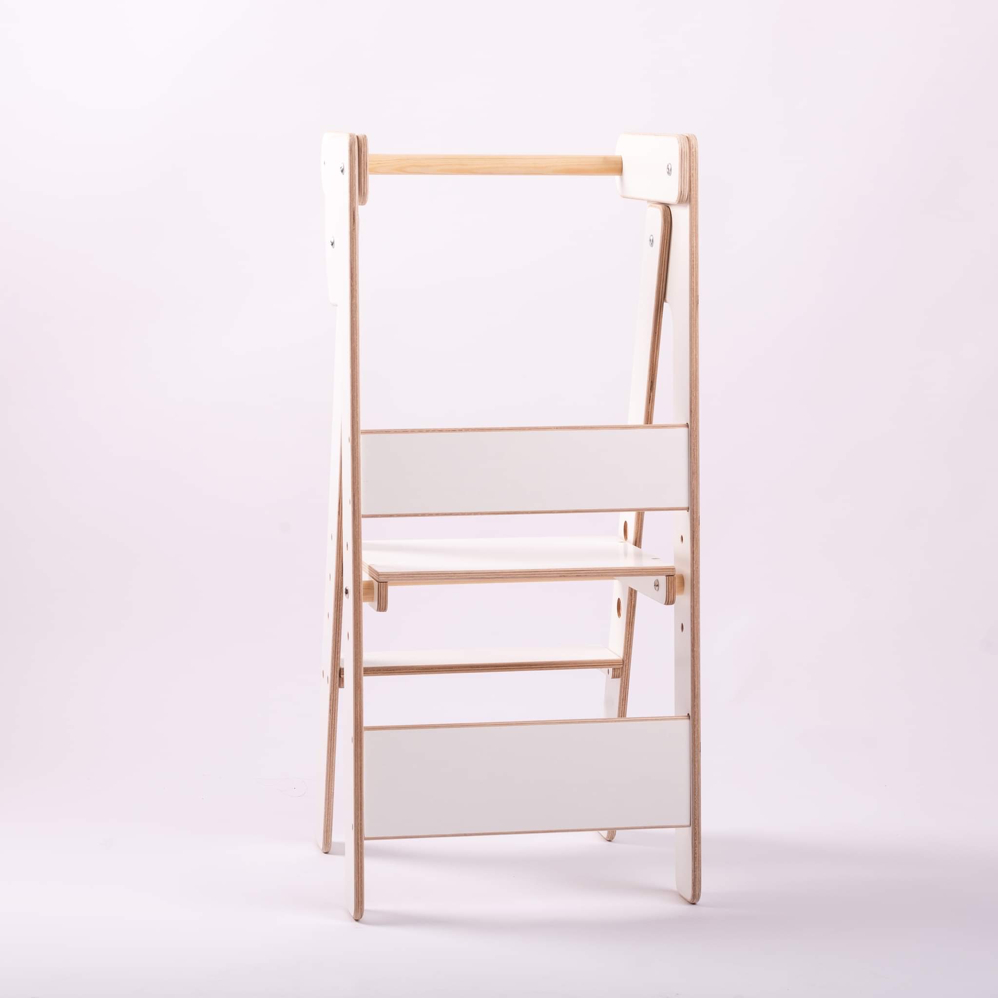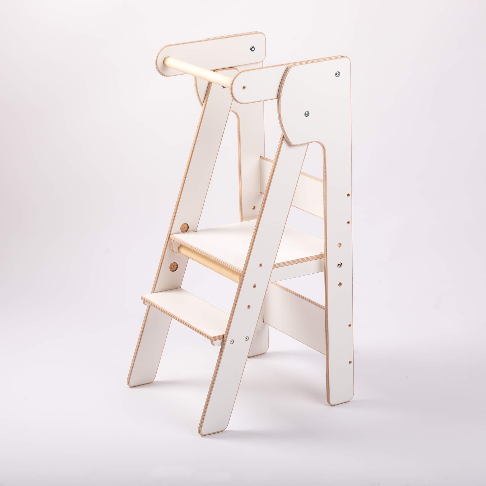 Vyrobeno z ekologicky nezávadného materiálu, buková překližka 15 mm. Pevná a stabilní konstrukce. Zádové tyčky lze v pozdějším věku odstranit a dítě tak nemusí nic podlézat. Nastavitelný stupínek (hlavní podesta) lze nastavit na 35cm, 40cm a 45cm.