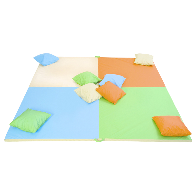 Velký koberec pastelových barev je opatřen držadly pro lepší manipulaci. Koberec poskytuje dostatečný prostor pro nejmenší.