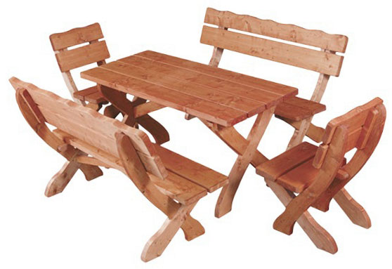 Dopřejte si luxusní posezení z masivního dřeva. Zahradní set je vyrobený ze smrkového dřeva. Zpracování je velice kvalitní. Zahradní set se skládá ze zahradního stolu, dvou zahradních lavic a dvou zahradních židlí. K dostání je buď s mořenou povrchovou úpravou nebo ošetřen ekologickým, zdravotně nezávadným lakem, který chrání nábytek před nepříznivými vlivy jako je slunce, déšť a vítr.