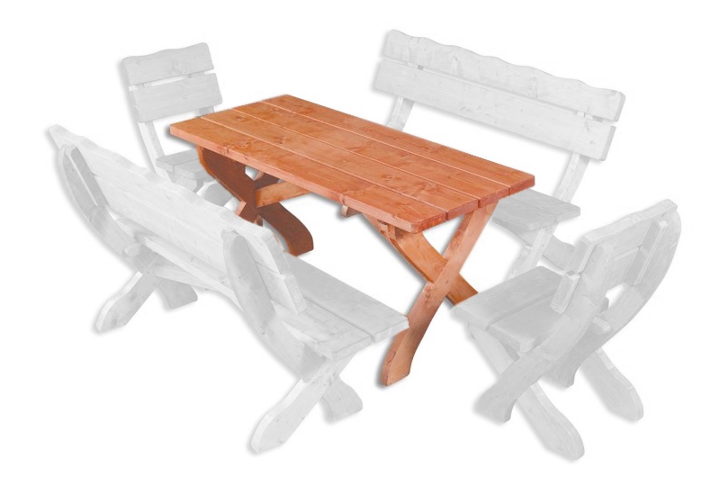 Dopřejte si luxusní posezení z masivního dřeva. Zahradní stůl je vyrobený ze smrkového dřeva. Zpracování je velice kvalitní. K dostání je buď s mořenou povrchovou úpravou nebo ošetřena ekologickým, zdravotně nezávadným lakem, který chrání nábytek před nepříznivými vlivy jako je slunce, déšť a vítr. POSLEDNÍ KUS VE VÝPRODEJI.