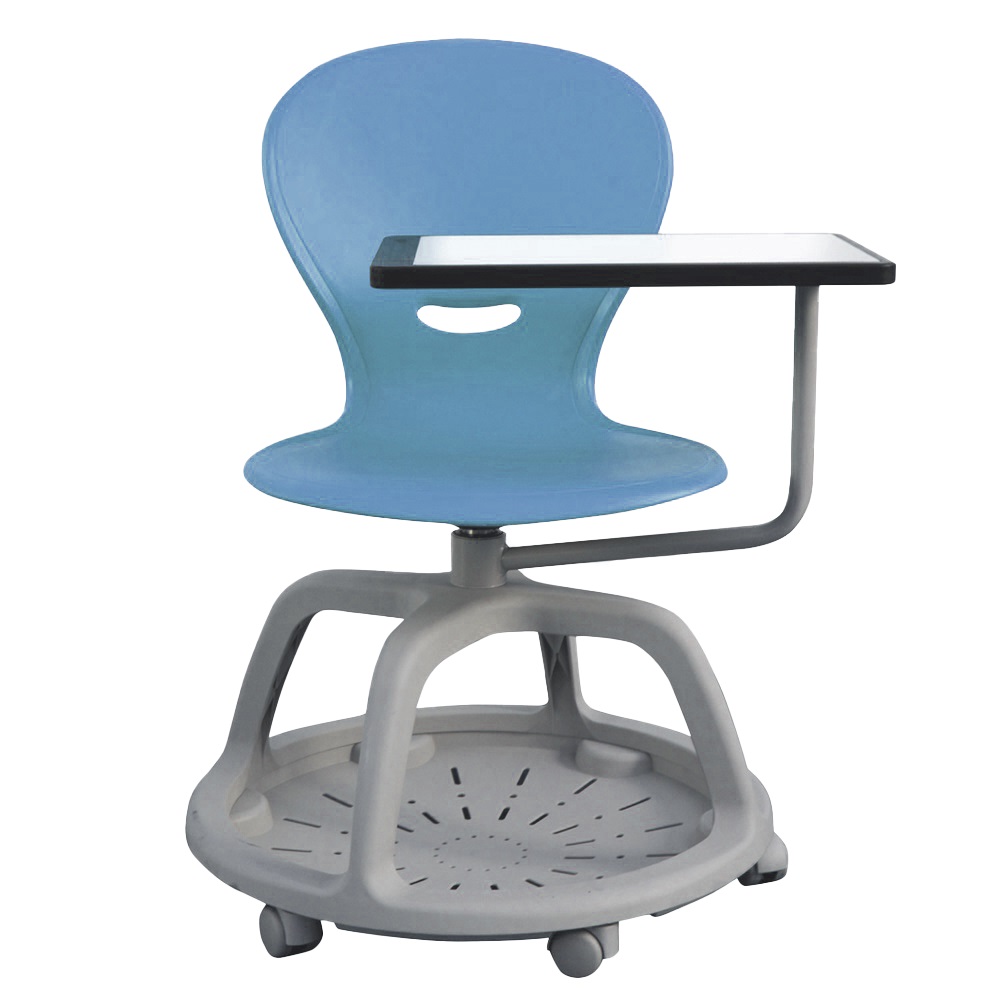 Široká kruhová základna poskytuje dokonalé řešení pro uložení batohů a věcí studentů. Lze do ní integrovat psací podložku upevněnou na otočné podpěře, která poskytuje snadné přizpůsobení pro praváky i leváky. Nabízena v několika barevných variantách. Velikost: 6 (výška sedáku: 45 cm).